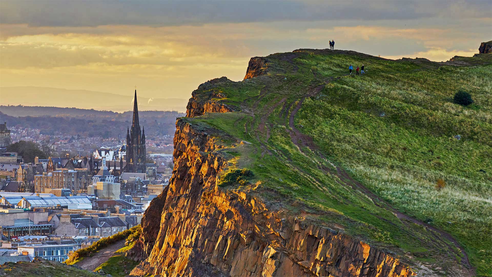 Salisbury Crags in Holyrood Park overlooking Edinburgh