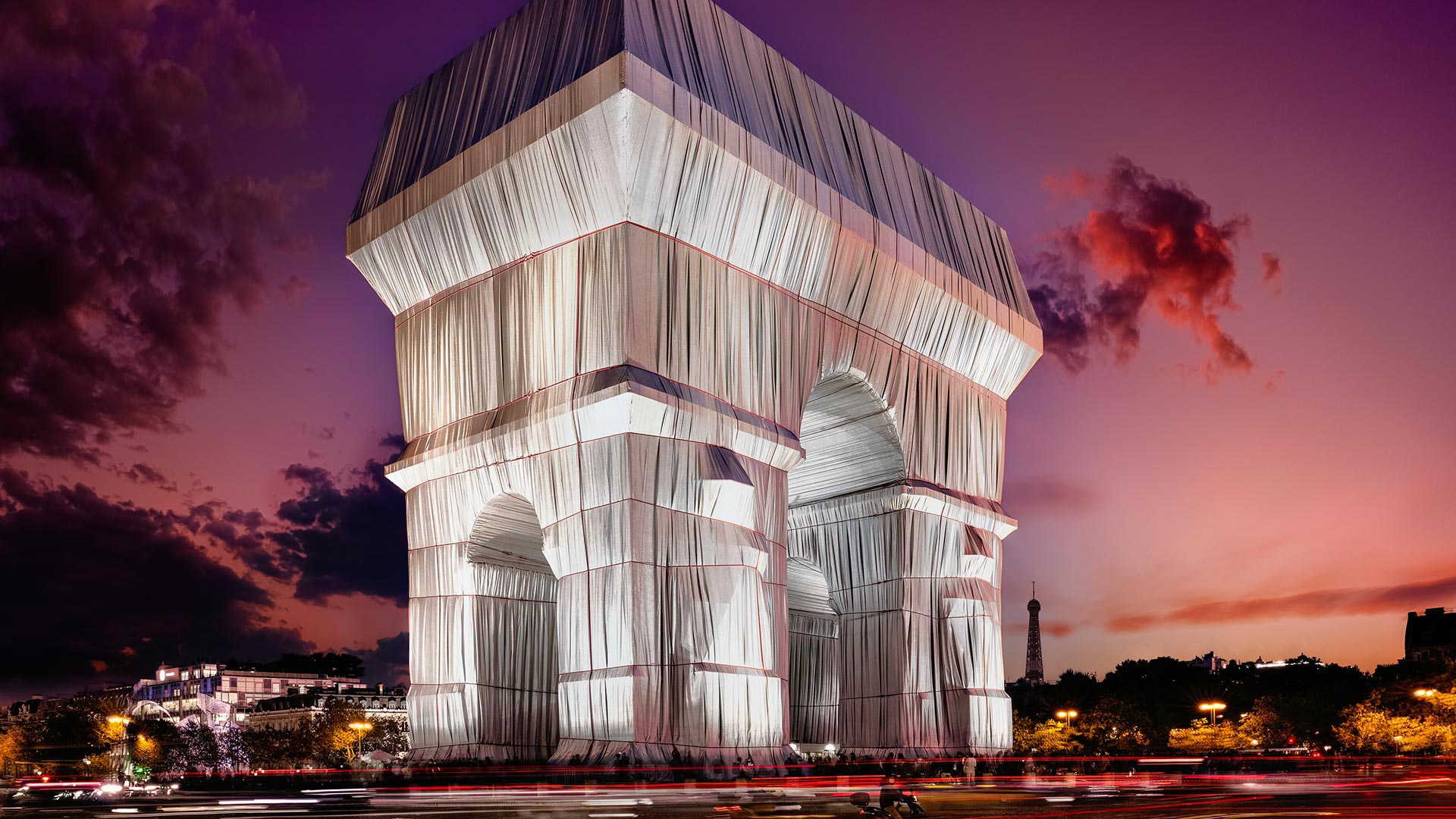 'L'Arc de Triomphe, Wrapped,' an art installation by Christo and Jeanne-Claude on September 24, 2021, in 巴黎, 法国 (© Bruno de HOGUES/盖蒂图片社)