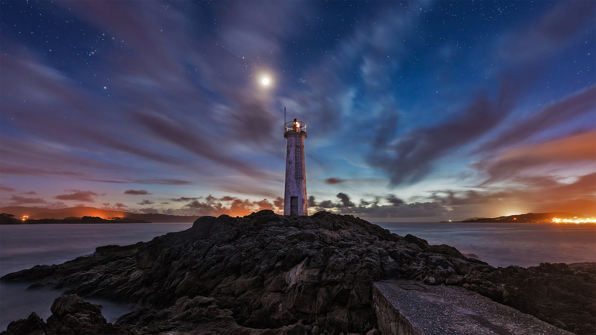 Faro de Playa Lago, Costa da Morte, Muxia, Galicia, 西班牙 (© Carlos Fernandez/盖蒂图片社)
