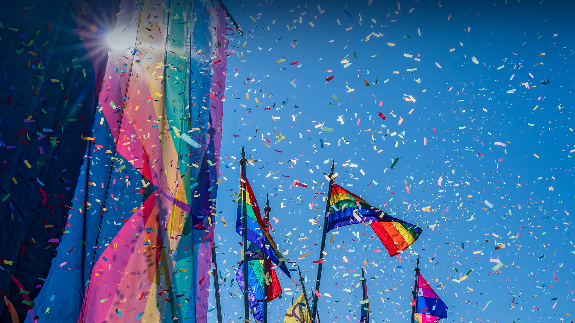 Rainbow flags and confetti, Reykjavík, 冰岛 (© Arctic-Images/盖蒂图片社)